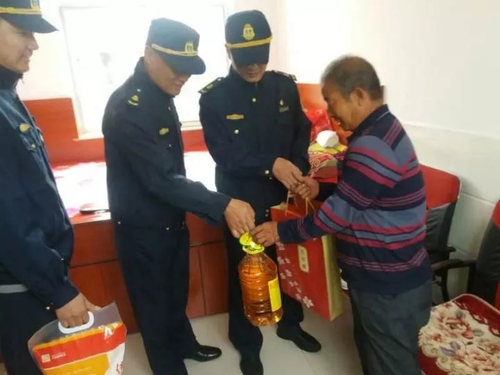 2017年10月2日上午,市运管处市场管理大队党小组全体党员来到了市区回里镇的李大爷家里,为儿子在外打工不能回家的李大爷送上了节日的慰问。