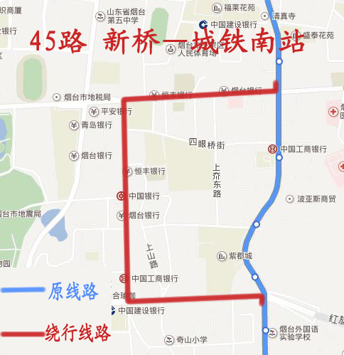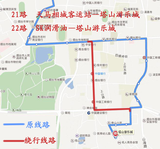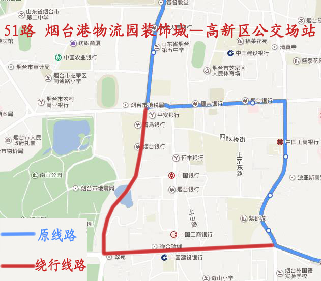 南迎祥路封闭施工,公交线路绕行 涉及2路、21路、22路、45路、51路、59路、高铁2号线 共7条公交线路 ? (通讯员 郝亮亮)因道路大修工程施工,2017年7月19日至8月25日,芝罘区南迎祥路(环山路至红旗路之间)路段道路全封闭施工,公交车辆禁止通行,受此影响,自7月19日(星期三)起,2路、21路、22路、45路、51路、59路、高铁2号线共7条公交线路届时将进行临时调整。方案如下: 2路由奇山小区发车,沿原线路行至奇山东街与红旗中路交叉口左转,沿红旗中路行至红旗中路与上夼西路交叉口右转,沿上夼西路行至上夼西路与环山路交叉口右转,沿环山路行至环山路与迎祥路交叉口左转恢复原线路。绕行期间不再停靠南迎祥路、警备区第二干休所、迎祥路等站点,临时增加上夼美食街、上夼西路、芝罘区妇幼保健院等站点。 21路由天马相城客运站发车,沿原线路行至环山路与上夼西路交叉口右转,沿上夼西路行至上夼西路与红旗中路交叉口左转,沿红旗中路行至红旗中路与奇山东街交叉口右转恢复原线路。绕行期间不再停靠芝罘区妇幼保健院、迎祥路、警备区第二干休所、南迎祥路等站点,临时增加上夼西路、上夼美食街等站点。 22路由SK润滑油发车,沿原线路行至环山路与上夼西路交叉口右转,沿上夼西路行至上夼西路与红旗中路交叉口左转,沿红旗中路行至红旗中路与奇山东街交叉口右转恢复原线路。绕行期间不再停靠芝罘区妇幼保健院、迎祥路、警备区第二干休所、南迎祥路等站点,临时增加上夼西路、上夼美食街等站点。 45路由新桥发车,沿原线路行至迎祥路与环山路交叉口右转,沿环山路行至环山路与上夼西路交叉口左转,沿上夼西路行至上夼西路与红旗中路交叉口左转,沿红旗中路行至红旗中路与山海路交叉口右转,恢复原线路。绕行期间不再停靠迎祥路、警备区第二干休所、南迎祥路等站点,临时增加芝罘区妇幼保健院、上夼西路、上夼美食街、奇山小区等站点。 51路由烟台港物流园装饰城发车,沿原线路行至胜利路与环山路交叉口直行,沿胜利路行至胜利路与红旗中路交叉口左转,沿红旗中路行至红旗中路与南迎祥路交叉口直行恢复原线路。绕行期间不再停靠新闻中心、迎祥路、警备区第二干休所、南迎祥路等站点,临时增加平安银行、华阳热电、胜利南路南口、塔山市场、奇山小区等站点。 59路由姜家疃发车,沿原线路行至红旗中路与上夼西路交叉口左转,沿上夼西路行至上夼西路与环山路交叉口右转,沿环山路行至环山路与迎祥路交叉口直行恢复原线路。绕行期间不再停靠奇山小区、南迎祥路、警备区第二干休所、迎祥路等站点,临时增加上夼美食街、上夼西路、芝罘区妇幼保健院等站点。 高铁2号线由城铁南站发车,沿原线路行至山海路与红旗中路交叉口左转,沿红旗中路行至红旗中路与胜利路交叉口右转,沿胜利路行至胜利路与南大街交叉口左转恢复原线路。绕行期间不再停靠警备区第二干休所、华侨新村、三马路等站点,增加塔山市场、烟台五中等站点。 ?